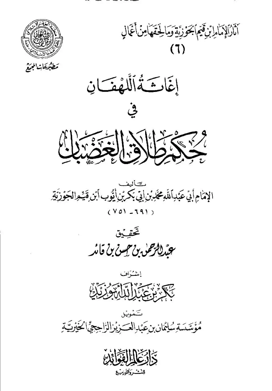 نبذة عن الكتاب: تناول فيها المؤلِّفُ قضيةً تَعُمُّ بها البلوى في كلِّ زمان ومكان، تنتاب الأُسَرَ فتقوِّضُها، والأحبةَ فتفرِّقُهم، وهي: «حكمُ الطَّلاقِ حالَ الغضب». وهي مسألة دقيقة حسَّاسة، لها صُوَرٌ متعدِّدة، ولكل صورة حُكمها، فكان لزاماً بَحْثُ هذه المسألة بتأنٍّ ورَويَّة، بما يتَّفِقُ مع رُوح الشَّرع الحنيف، ومقاصده السامية، القائمة على تحقيق مصالح العباد في الحال والمآل، بعيداً عن التقليد الفقهي والتعصُّب المذهبي.